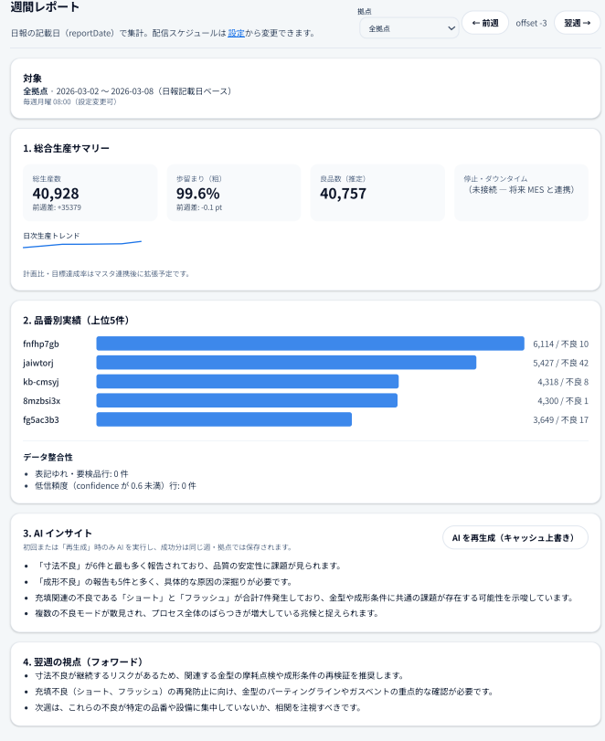 今まで製造日報を単なるメモとして、記録としてしか活用出来ていなかった工場に使ってもらいたいという想いで開発中です。