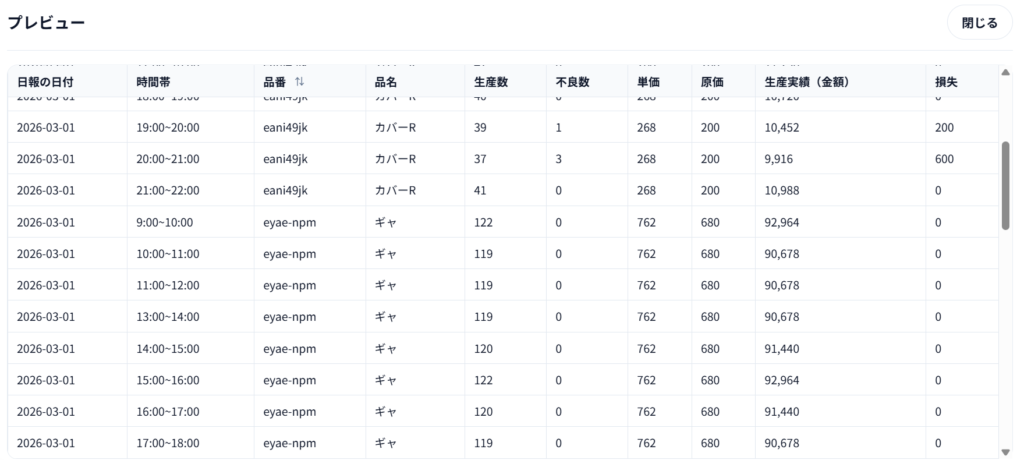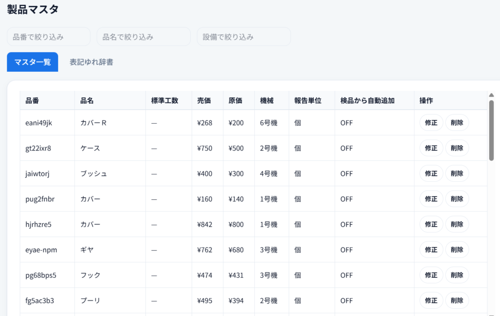 日々新規品番が増えたりする中で地味に面倒なのがマスタ整備ですが、毎日運用している製造日報を読み取るだけでマスタが整備されていく仕組みにしています。