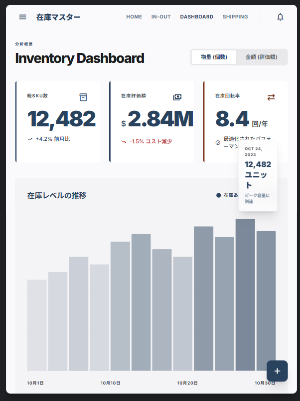 - ダッシュボード(全体の在庫状況を一目で確認)