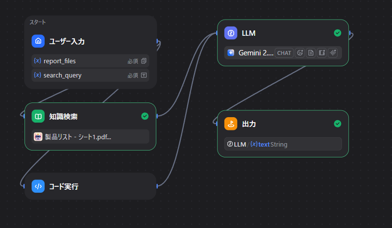 開始ノードと知識習得の間に、日報ファイルをAIに読み込ませてテキストとして抽出することで