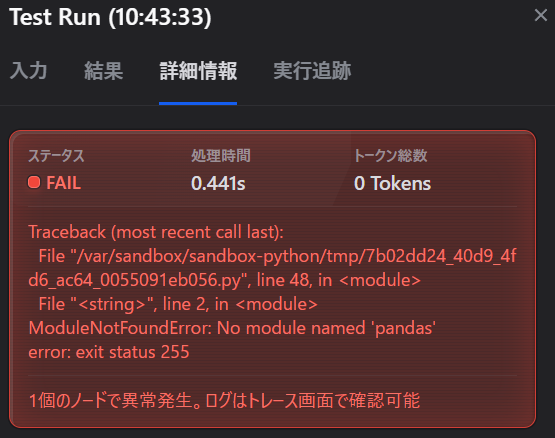 今回使っているDify環境では、データ処理でよく使う「pandas」が使えませんでした。