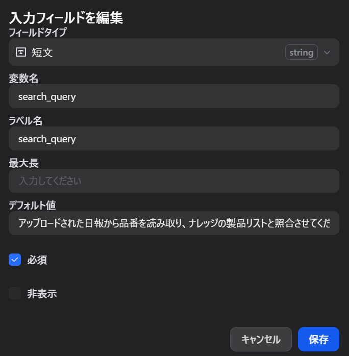 Difyのナレッジノードに情報を渡す際、