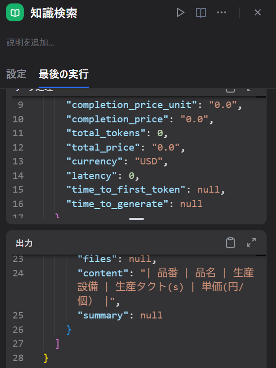 Difyにおいて、独自の外部データ(今回で言えば製品単価マスター)を参照させる「ナレッジ(RAG)」は、まさにDXの要です。