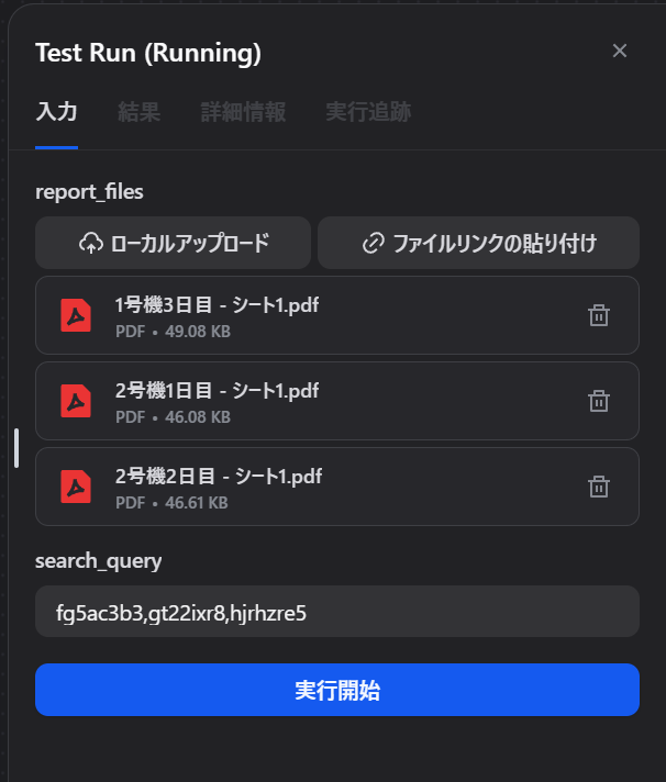 日報PDFを3枚入れてみて、search_queryに品番を手入力して実行してみます。