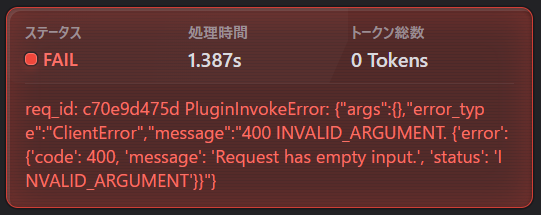 しかし、実行ボタンを押してもナレッジ情報は読み取れない。